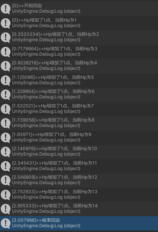 Ib_Log.Info($"[{Time.time}]>>Hp增加了1点,当前Hp为{Hp}");